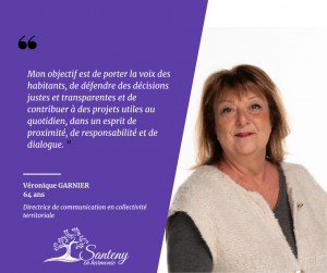 64 ans – Retraitée depuis 1 an. Santenoise depuis 25 ans. Ancienne Directrice de la communication auprès des collectivités territoriales, je suis depuis toujours engagée au service de l’intérêt général. Je me présente comme conseillère aux élections municipales dans l’équipe Santeny en Harmonie, avec la volonté d’écouter, de rassembler et d’agir concrètement pour notre commune. Mon objectif est de porter la voix des habitants, de défendre des décisions justes et transparentes, et de contribuer à des projets utiles au quotidien, dans un esprit de proximité, de responsabilité et de dialogue.